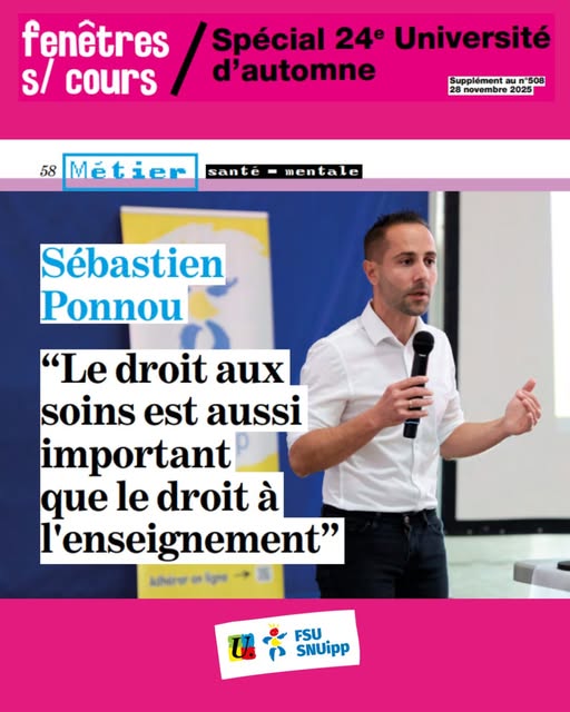 Lundi 23 mars, la FSU-SNUipp 86 organise un stage syndical d’une journée à destination de tou-tes les collègues, syndiqué-es ou non : “ Santé mentale à l’école : quels enjeux pour les pratiques pédagogiques et l’école inclusive ?” Nous accueillerons Sébastien Ponnou, psychanalyste et professeur en sciences de l’éducation et de la formation à l’Université Paris [...]